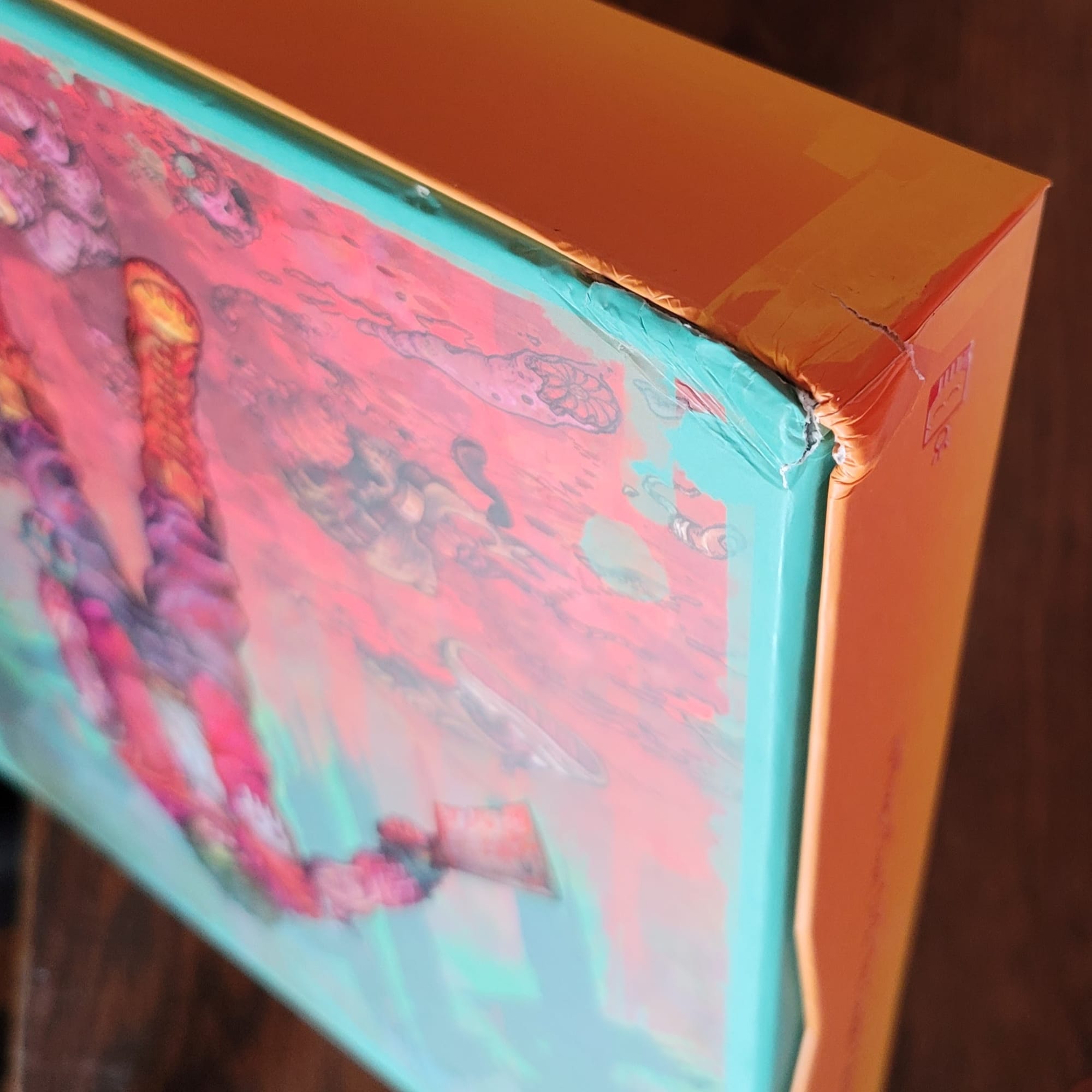 Deluxe original Teal vinyl 8 x 180g LP box set. Outer box has a severe corner ding bottom right which is why the set it so heavily discounted. Box contents are minty and complete (the records in individual covers, a turntable slip-mat, a sticker, and 2 art prints). Set combines for the first the complete soundtracks for Hotline Miami and Hotline Miami 2: Wrong Number to celebrate the 10th anniversary of the games. Previous, separate releases did not contain the complete soundtracks.